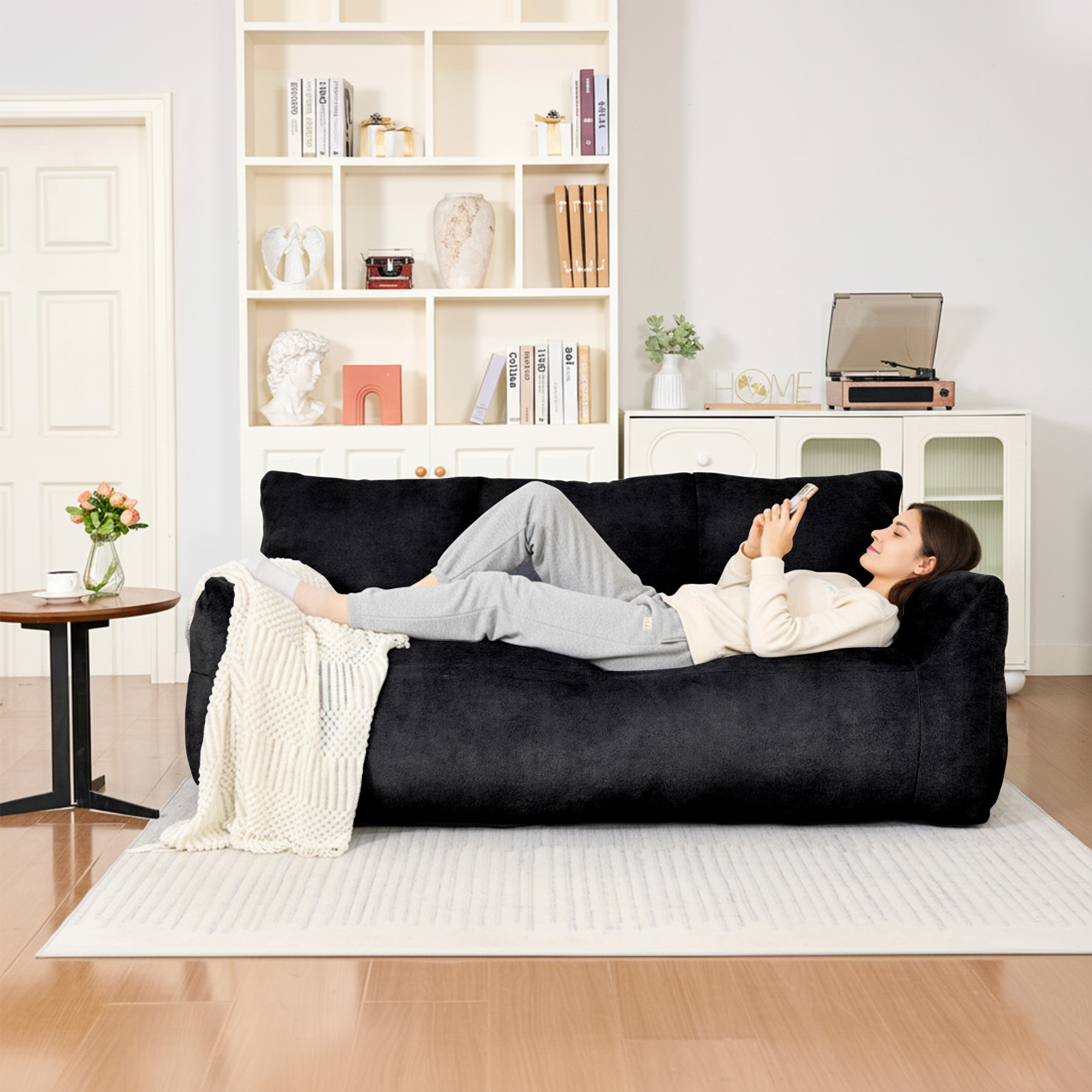 Comfortable Faux Fur Fabric: The sofa's outer layer features faux fur material with a smooth. soft. and skin-friendly texture. The interior is filled with high-density foam padding to ensure lasting support.