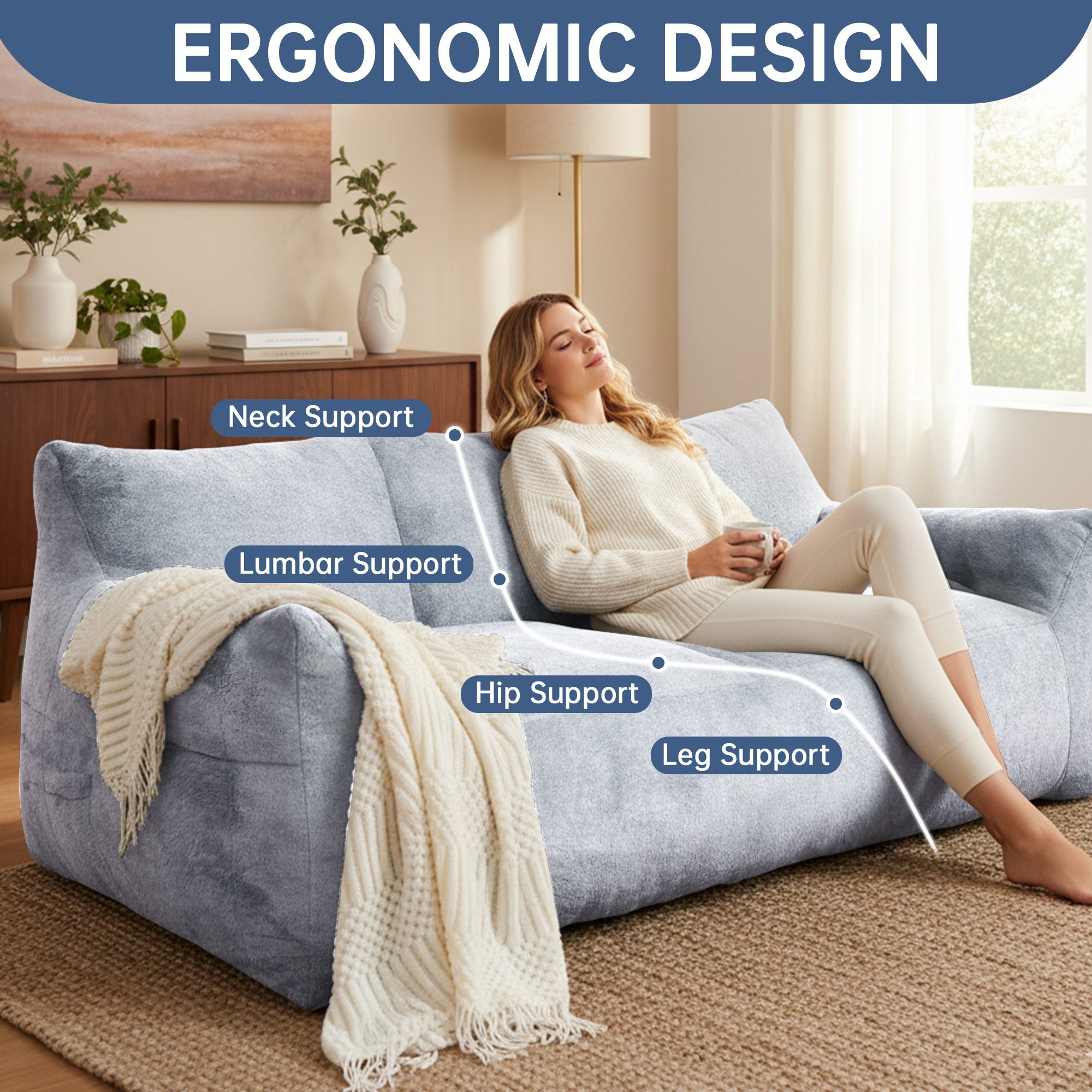 Ergonomic Design: This ergonomic lounge sofa conforms to the curves of your sitting posture. delivering a comfortable and pressure-relieving resting experience.