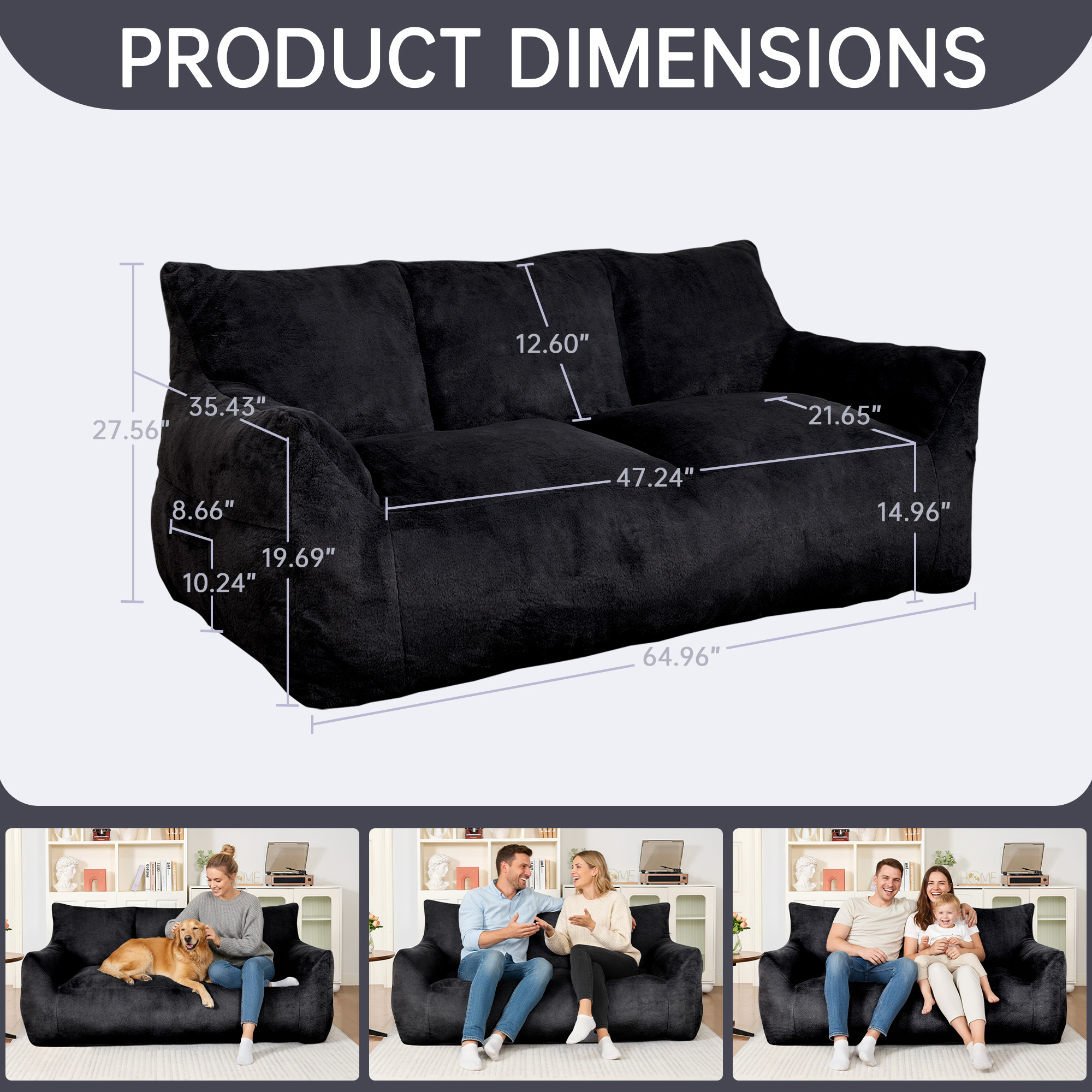 Loveseat Couch: Designed exclusively for adults. this oversized double sofa measures 64.96 x 35.43 x 27.56 inches and supports up to 650 pounds. comfortably accommodating two adults. This cozy sofa is perfect for spending quality time with family and friends.