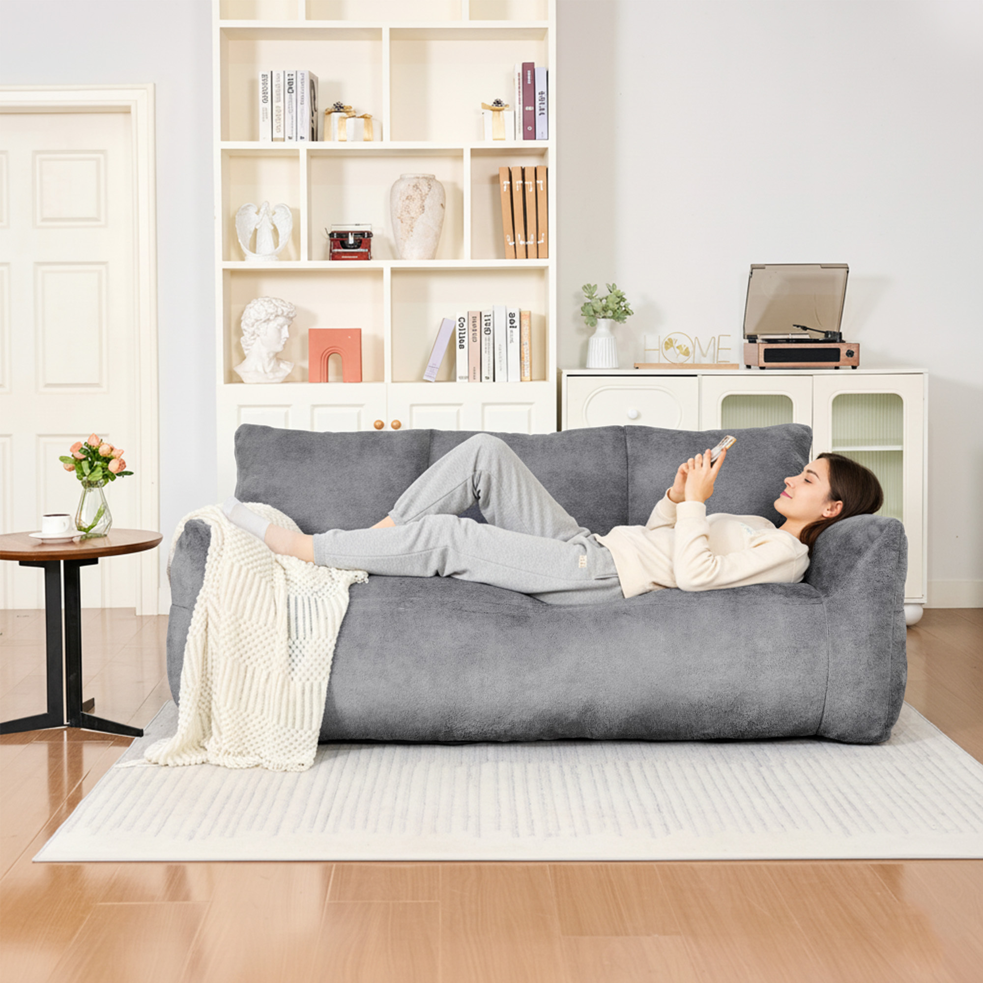 Modern Faux Fur Loveseat Couch for Small Space, Living Room Oversized Lounge Bean Bag Sofa with Memory Foam, Lazy Sofa with Soft Stuffed Filling for Apartment, Big Comfy Boneless Couches for Living Room, Bedroom